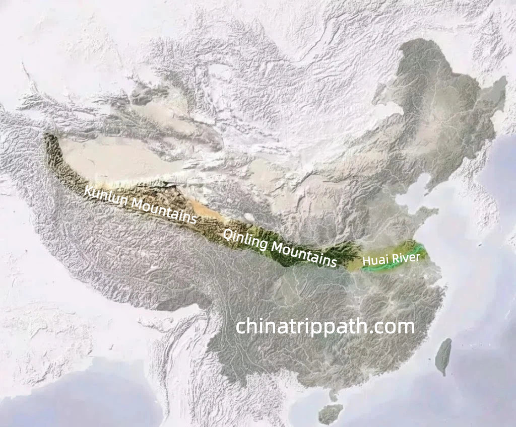 The Qinling Mountains and the Huai River form a natural boundary between northern and southern China, separating different climates, crops, and lifestyles.