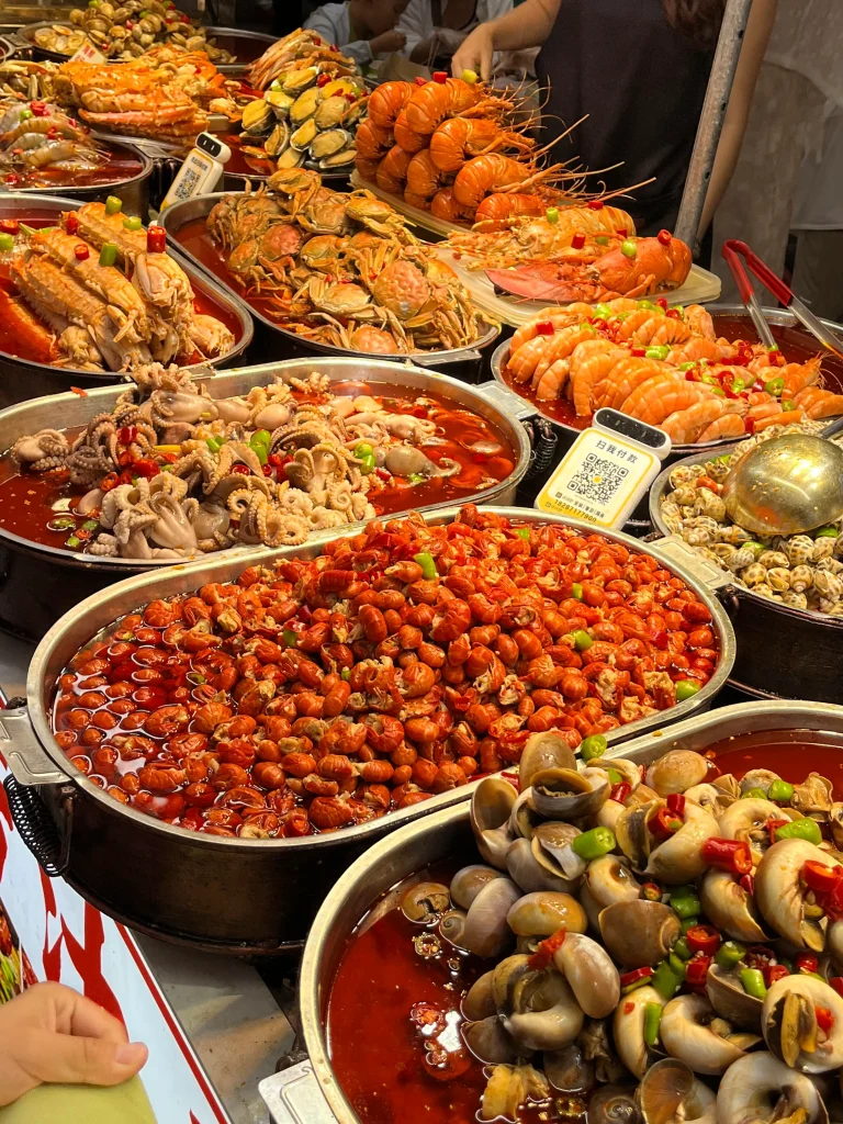 Point and eat. Chinese language skills help but aren’t essential for street food. Point at what looks good, hold up fingers for quantity, and pay. WeChat Pay or Alipay works at most stalls; carry small cash (¥1–10 notes) as backup.