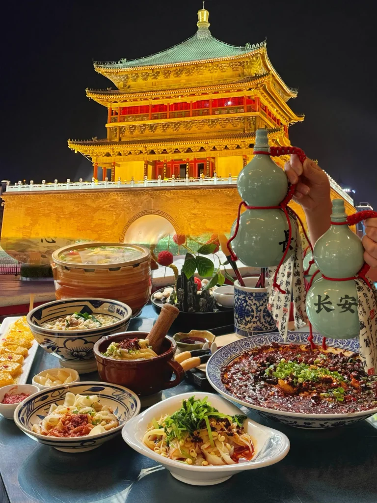 Xi’an’s cuisine reflects centuries of Silk Road influence. Unlike rice-based southern Chinese food, Xi’an dishes are wheat-heavy, bold, spicy, and deeply satisfying. Muslim culinary traditions also play a major role, making the food scene unique even within China.